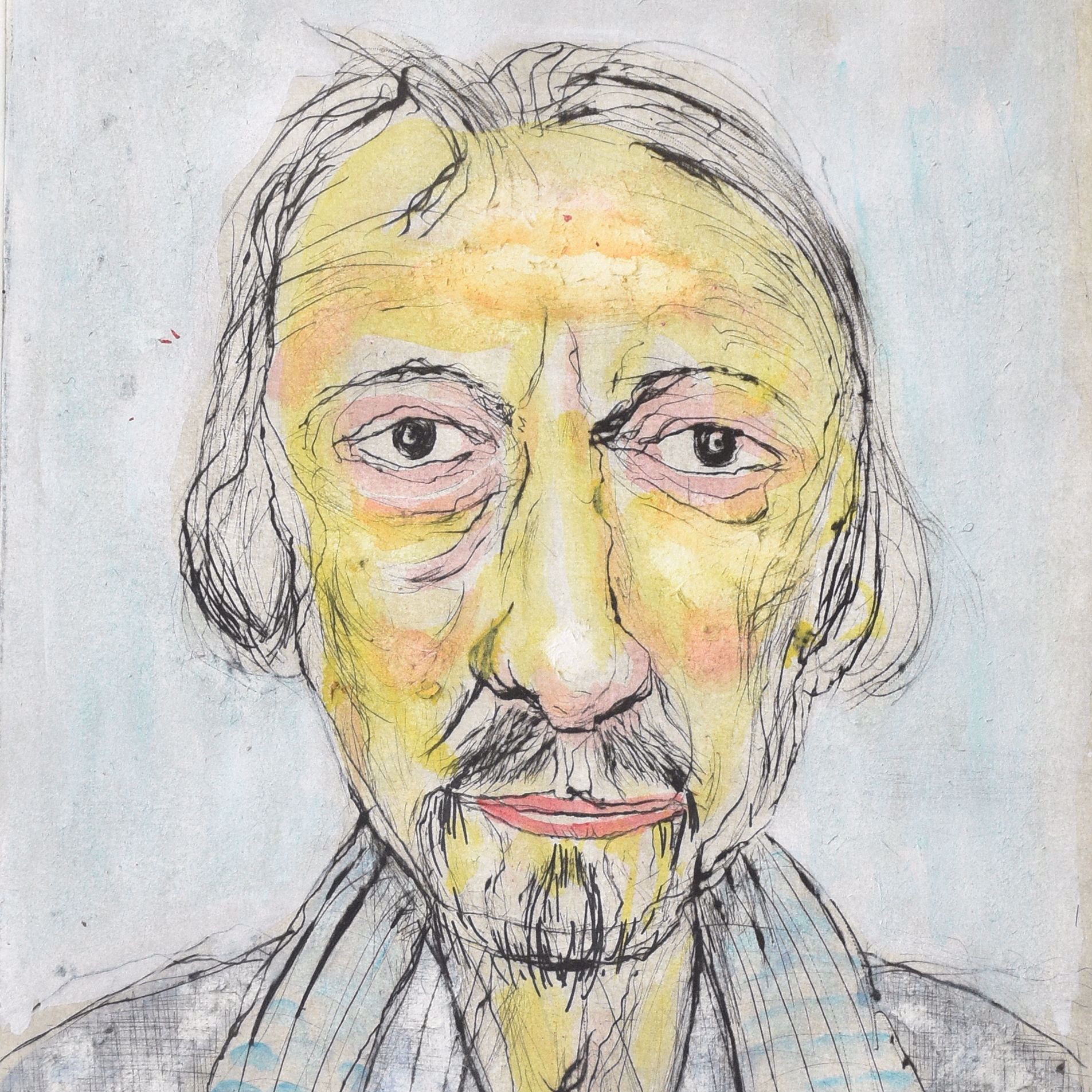 'Vriend'. Portrait of Dré Peeters. Hand coloured etching, 31 x 24.5.