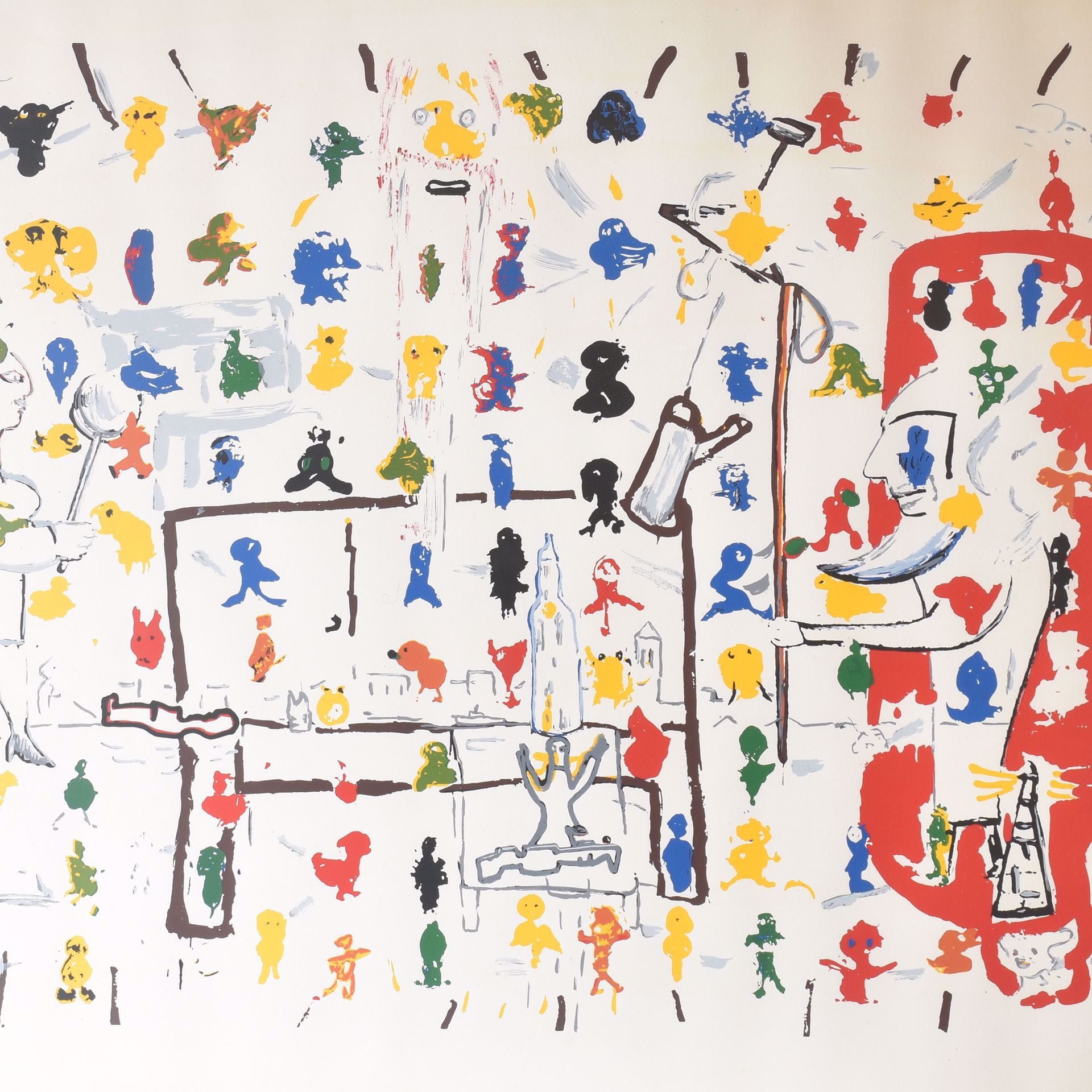 Characters at the table. (1993). Colour lithograph, signed.