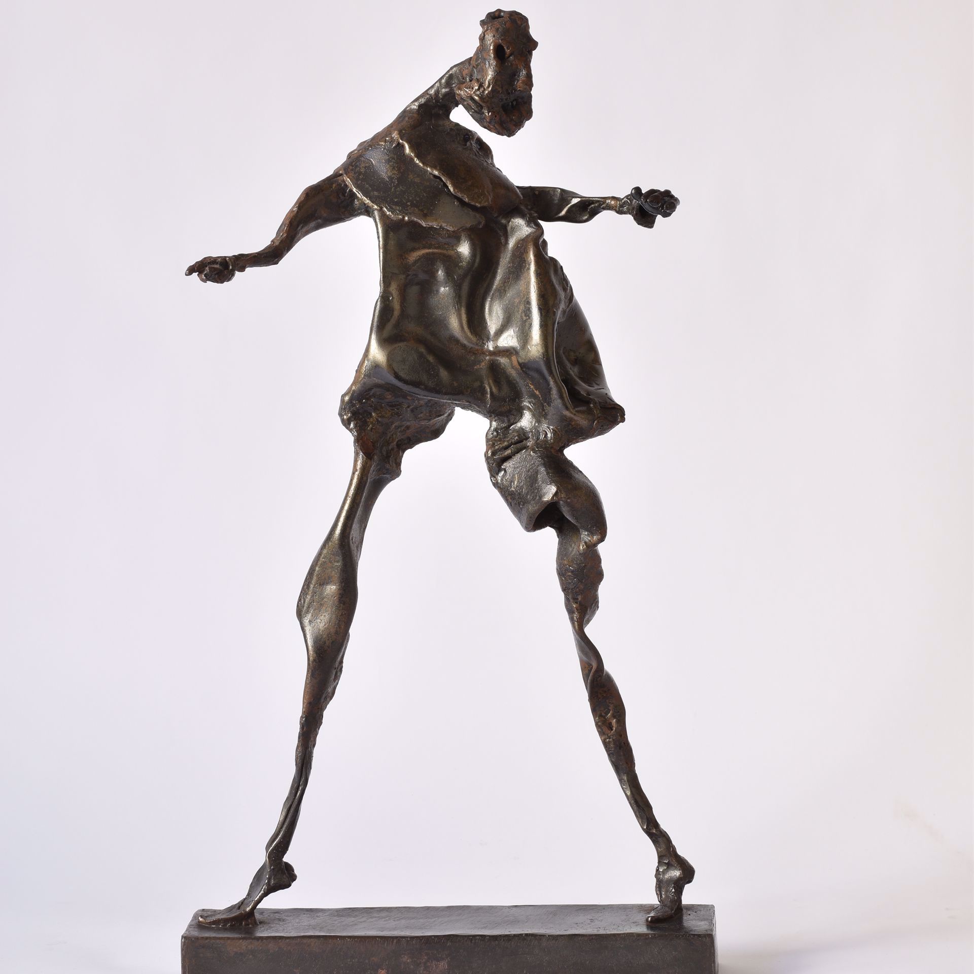 Standing man: patinated bronze sculpture. H: 47 cm.