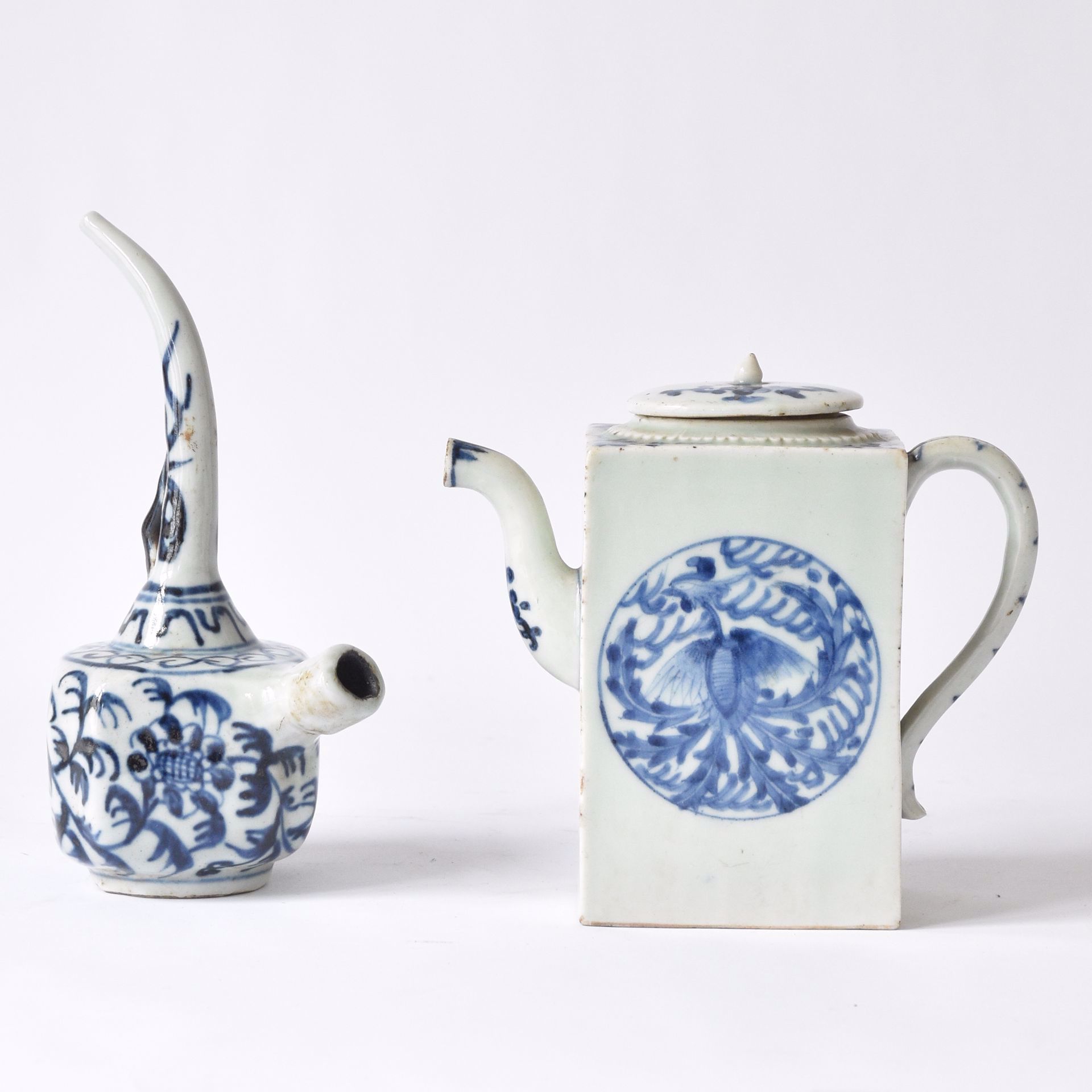 medallion decorated with bird of paradise. 19th century. And a small jug.