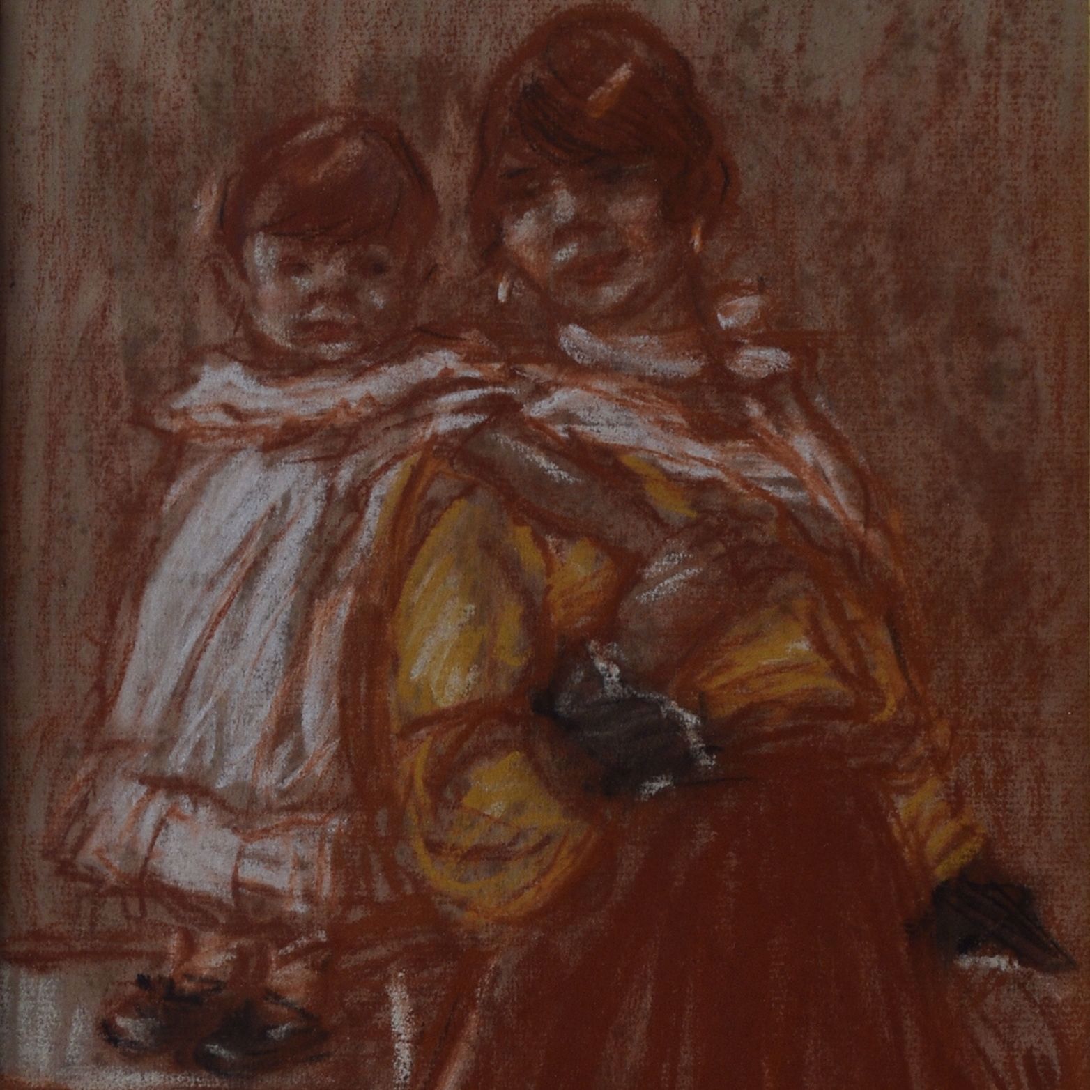 Augustine Pautre with son Eugeen. (double face). Colour crayon drawing, 35.5 x 17.5.