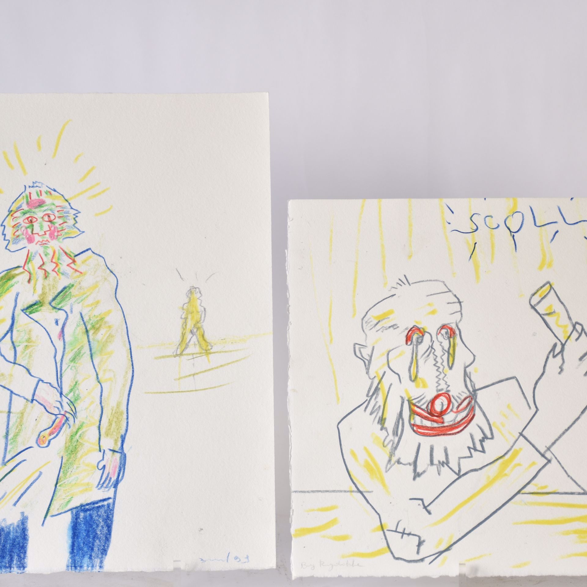 'Scoll'. ('99). Et une autre. ('99). Deux œuvres sur papier, 22 x 28.