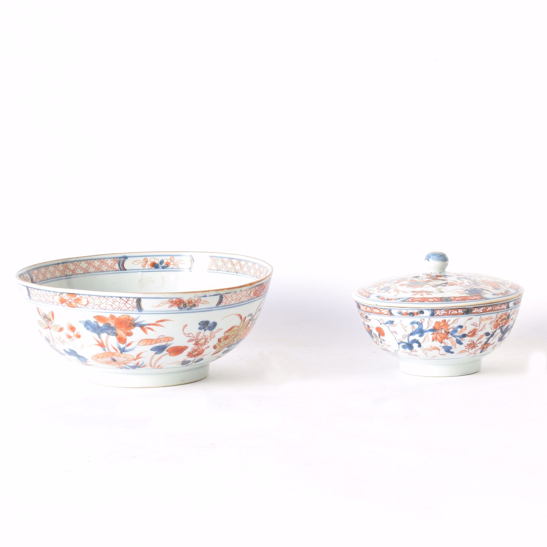 à décor rouge, bleu et doré de vases de jardin et de branches fleuries. 18e siècle.