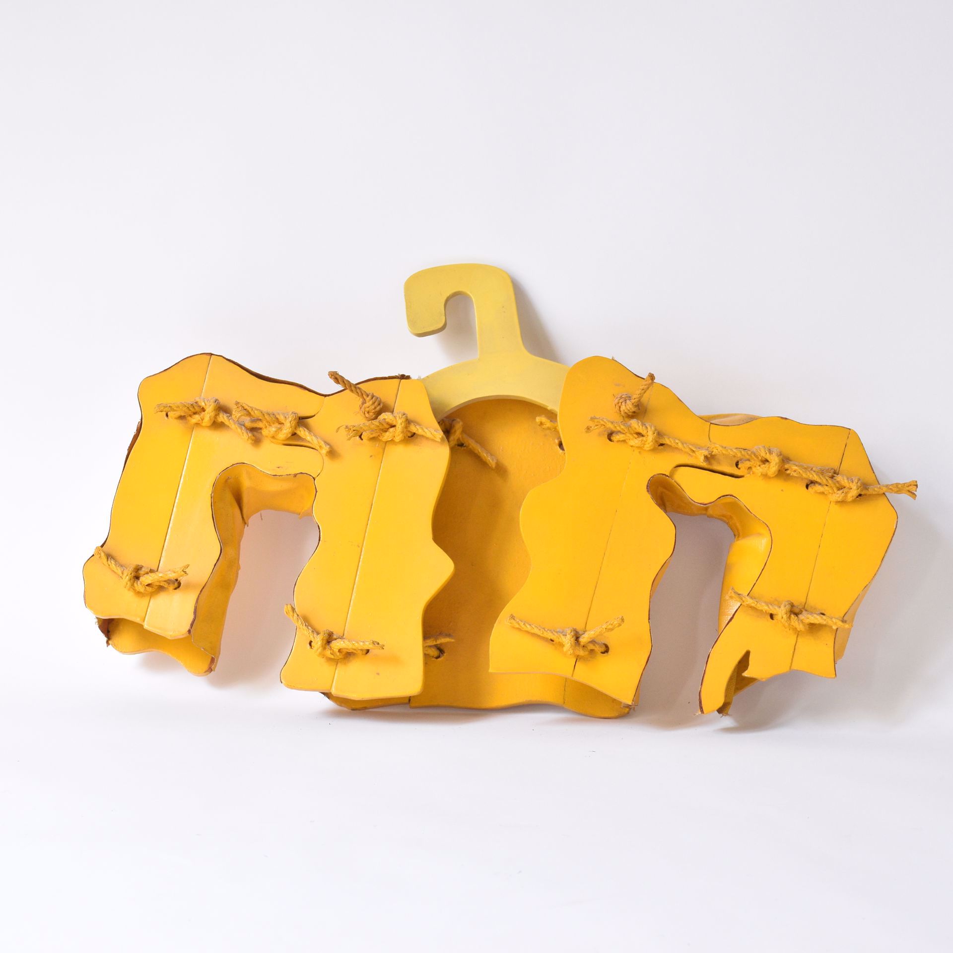 'Gilet'. Statue en bois sculpté et laqué jaune. 26 x 41 x 7.