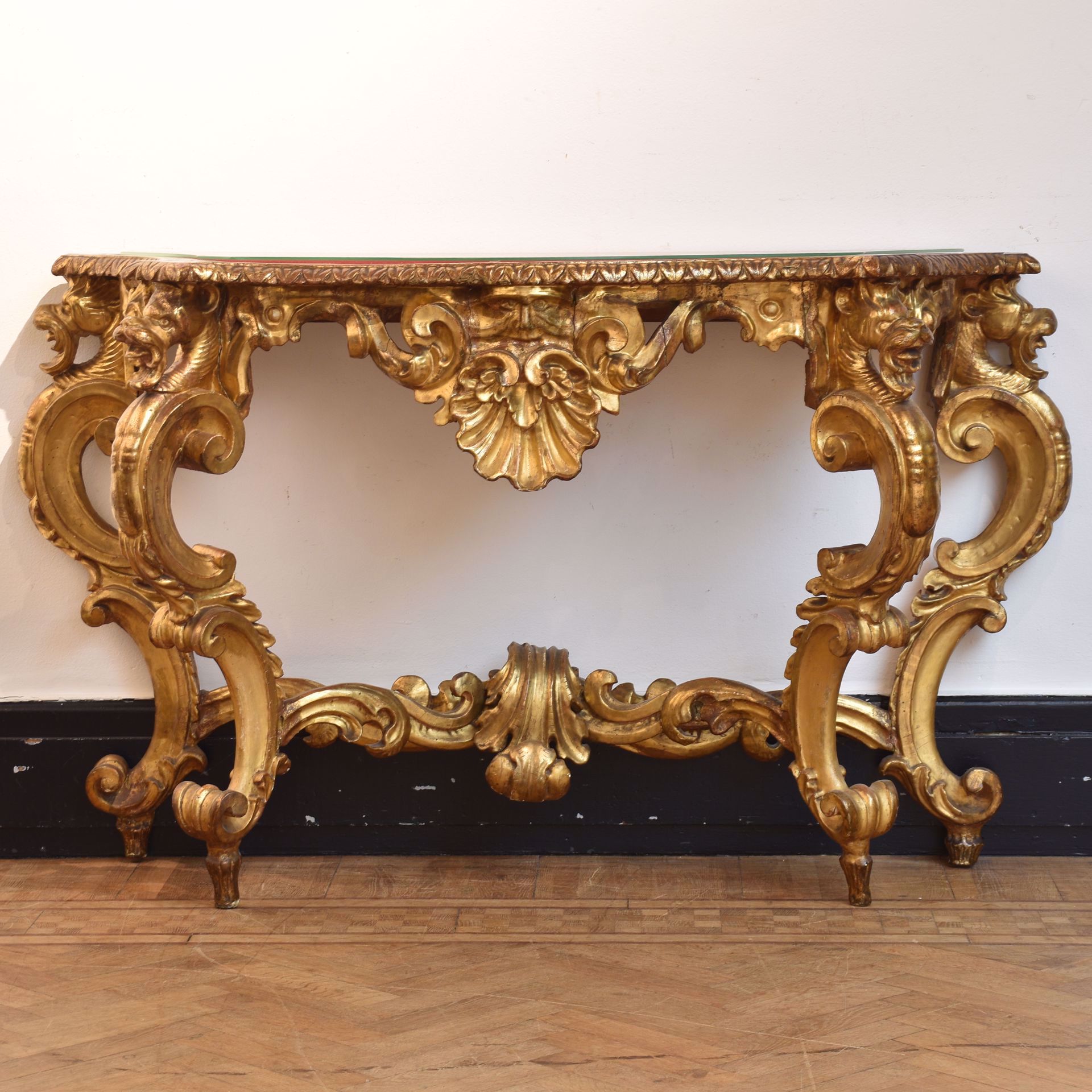 van gesneden en verguld hout: voluutvormige stijlen bekroond met drakenhoofden. 18e eeuw.