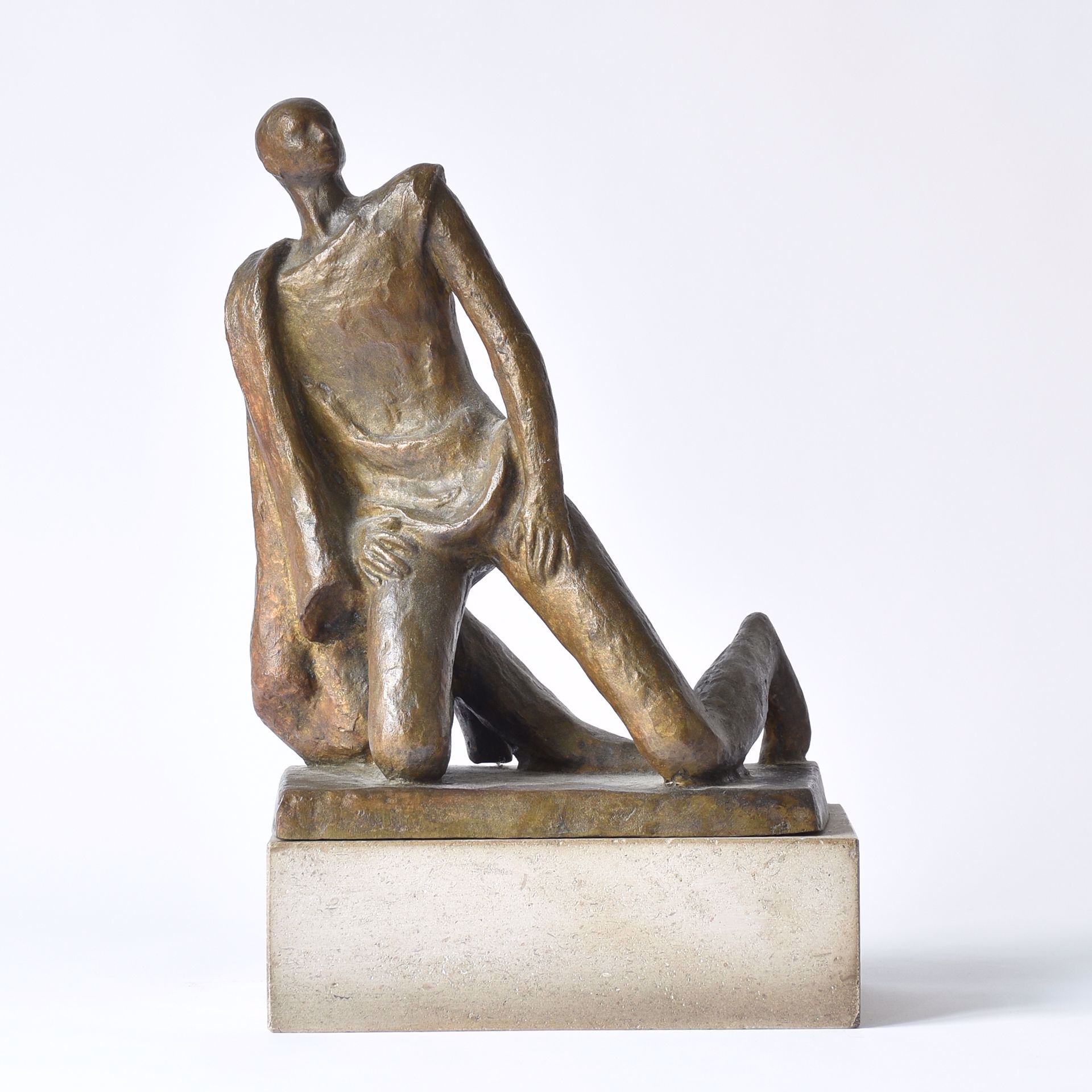 'Libération'. Statue en bronze avec patine verte. 1/14. Signée. 24 x 22 x 12. Sur socle rectangulaire en pierre.