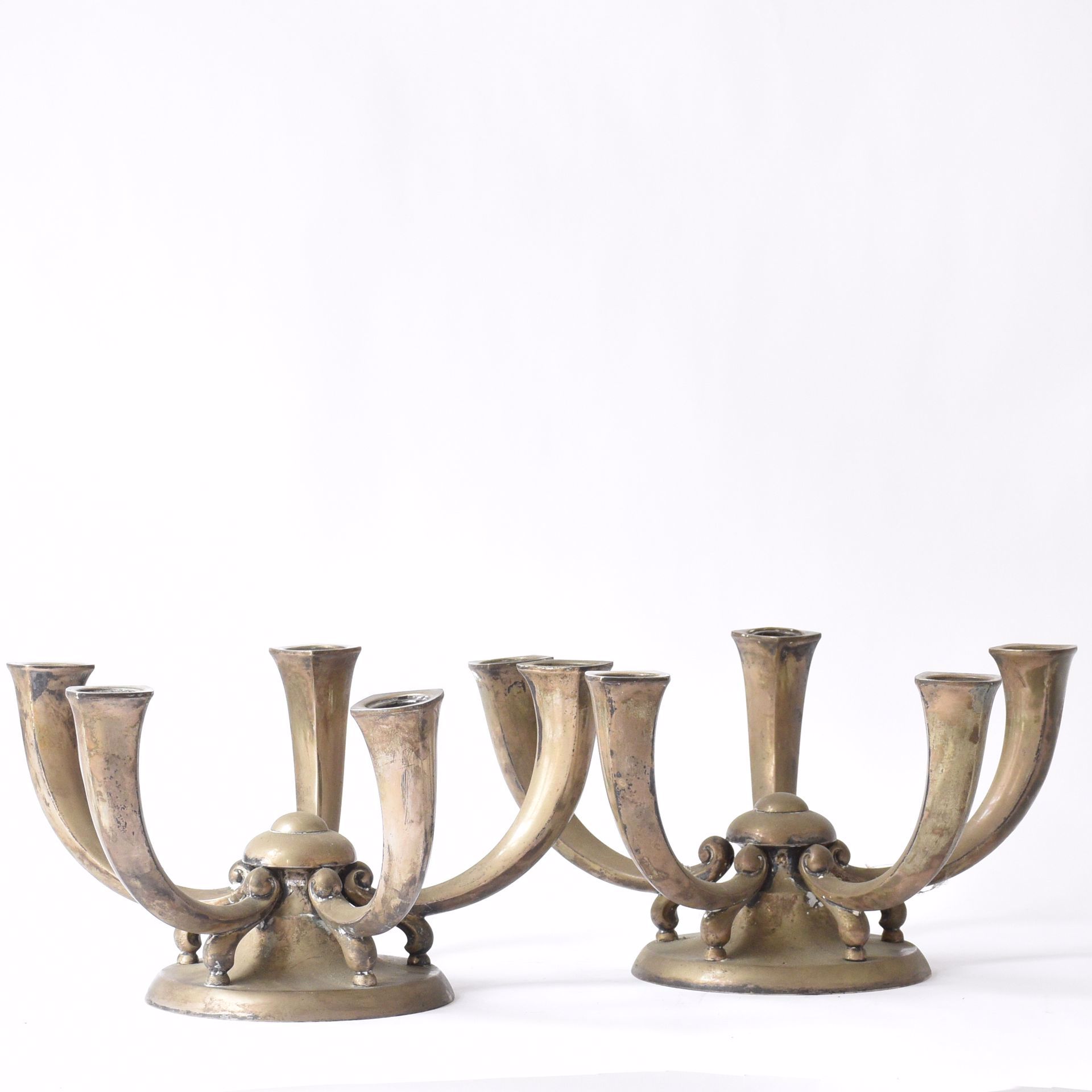 à cinq bras courbés sur pied rond. Poinçons allemands. G: 1370 g.