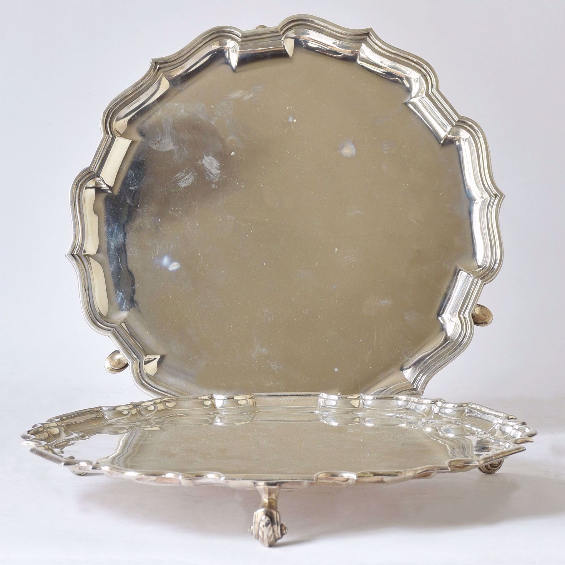 à trois pieds avec bord écaillé. Poinçons de Londres. Et une autre. G: 2030 g.