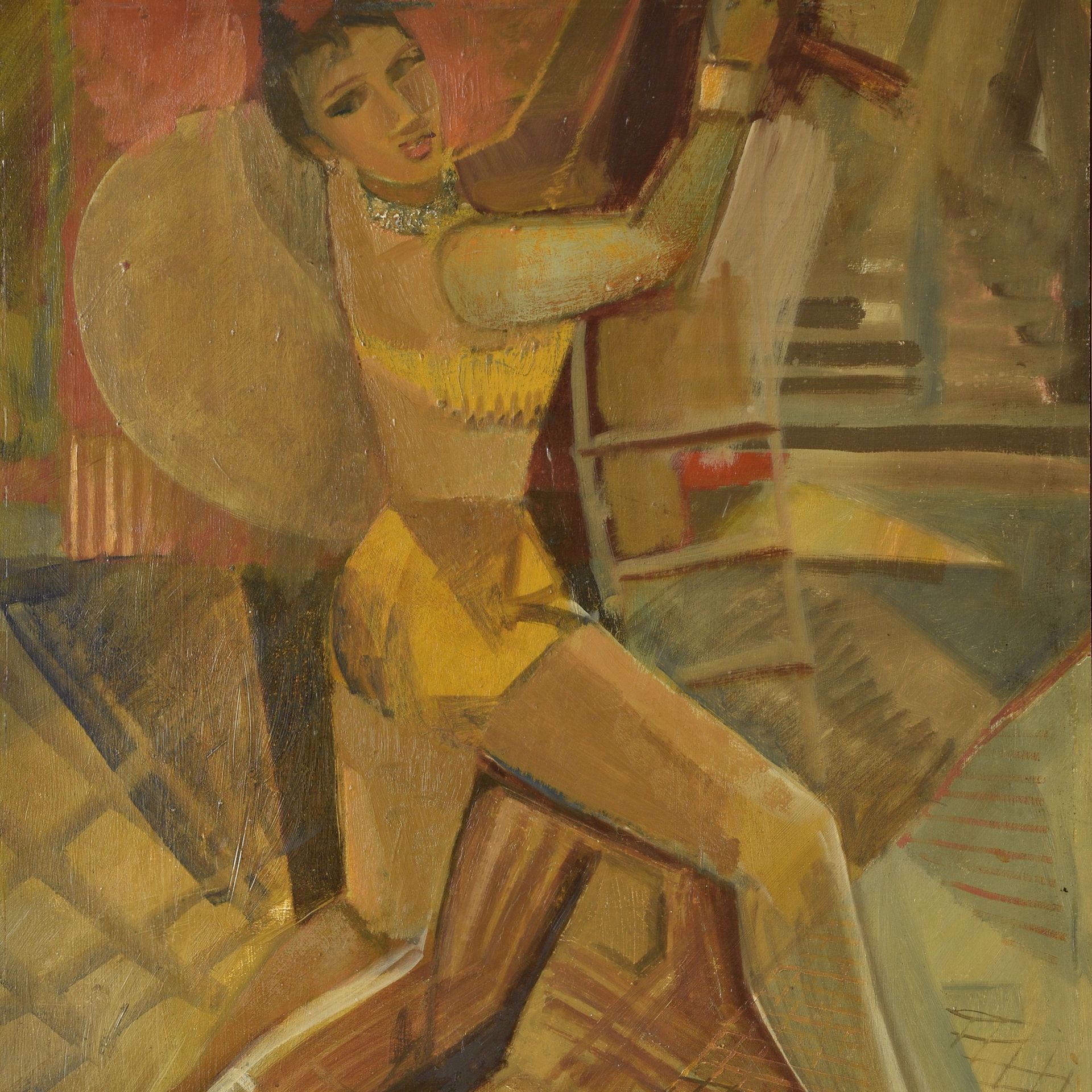 'Circusacrobaten'. Olieverf op papier op hardboard, 65 x 50.