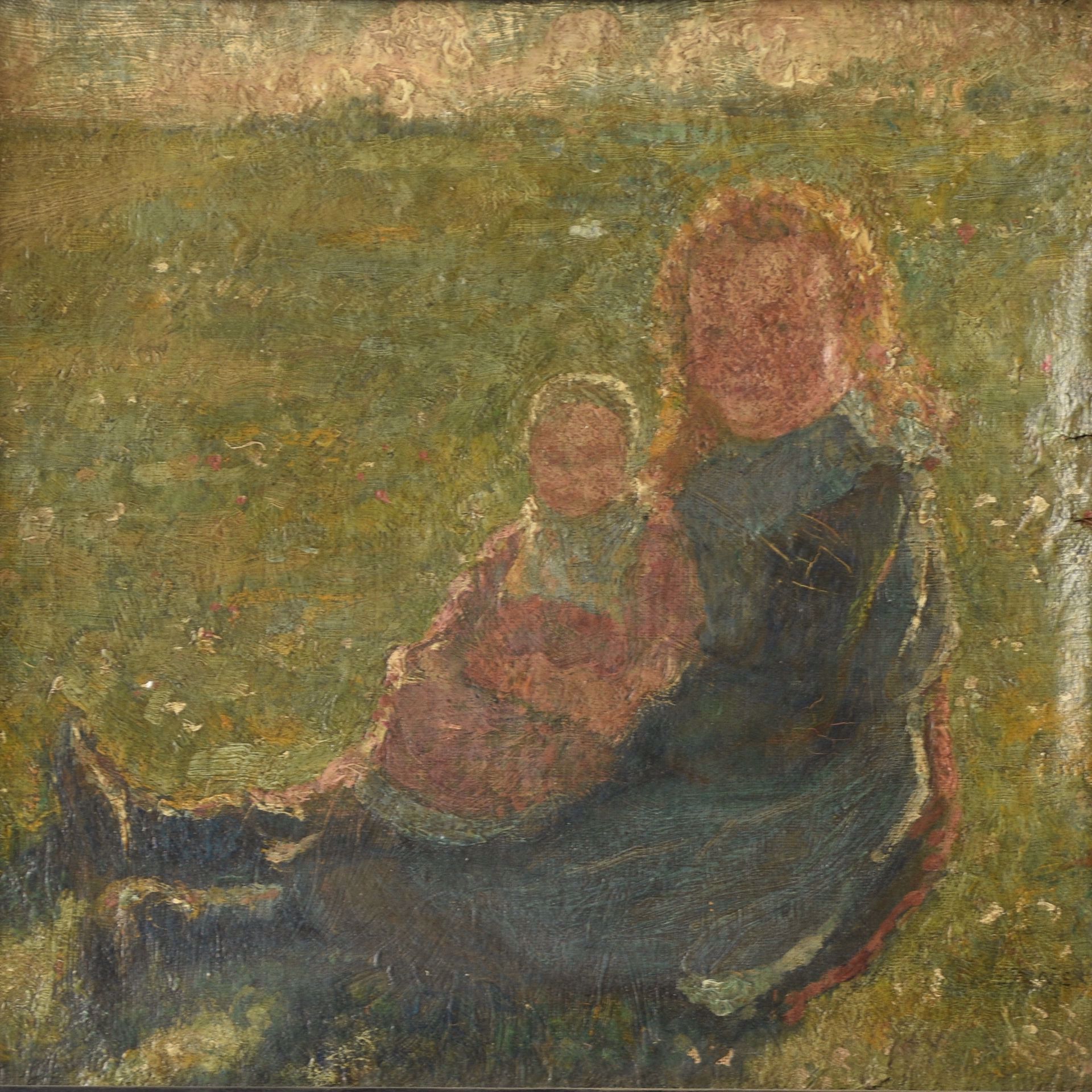 Moeder met kind in landschap. Doek, 30 x 32.