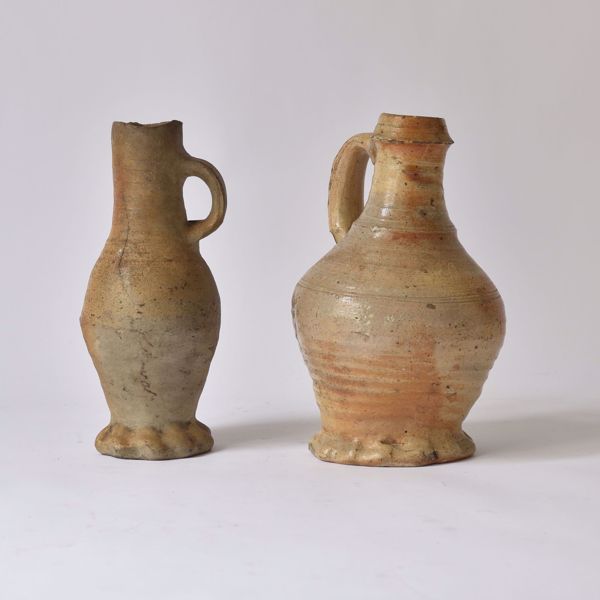 van bruin steengoed. Raeren, 16e eeuw. En één ander.