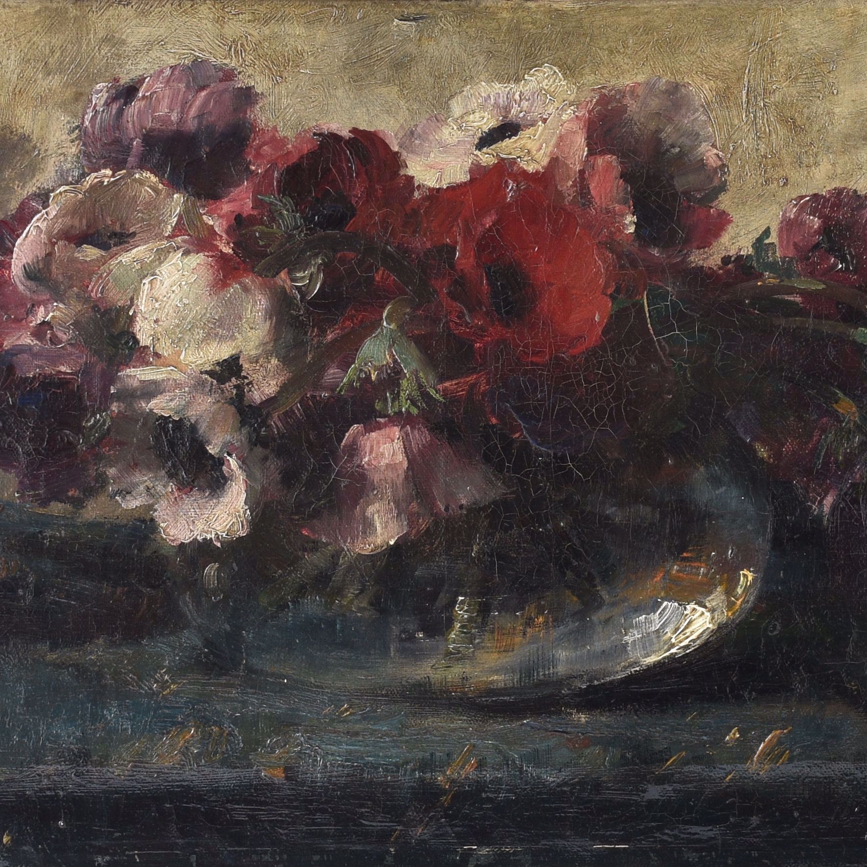 Stilleven met anemonen. Doek, 30 x 55.