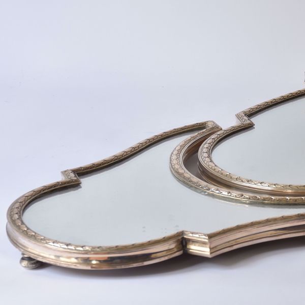 spiegel met twee zijstukken met zilveren montuur. Merken van Delheid.