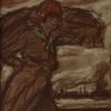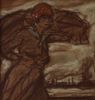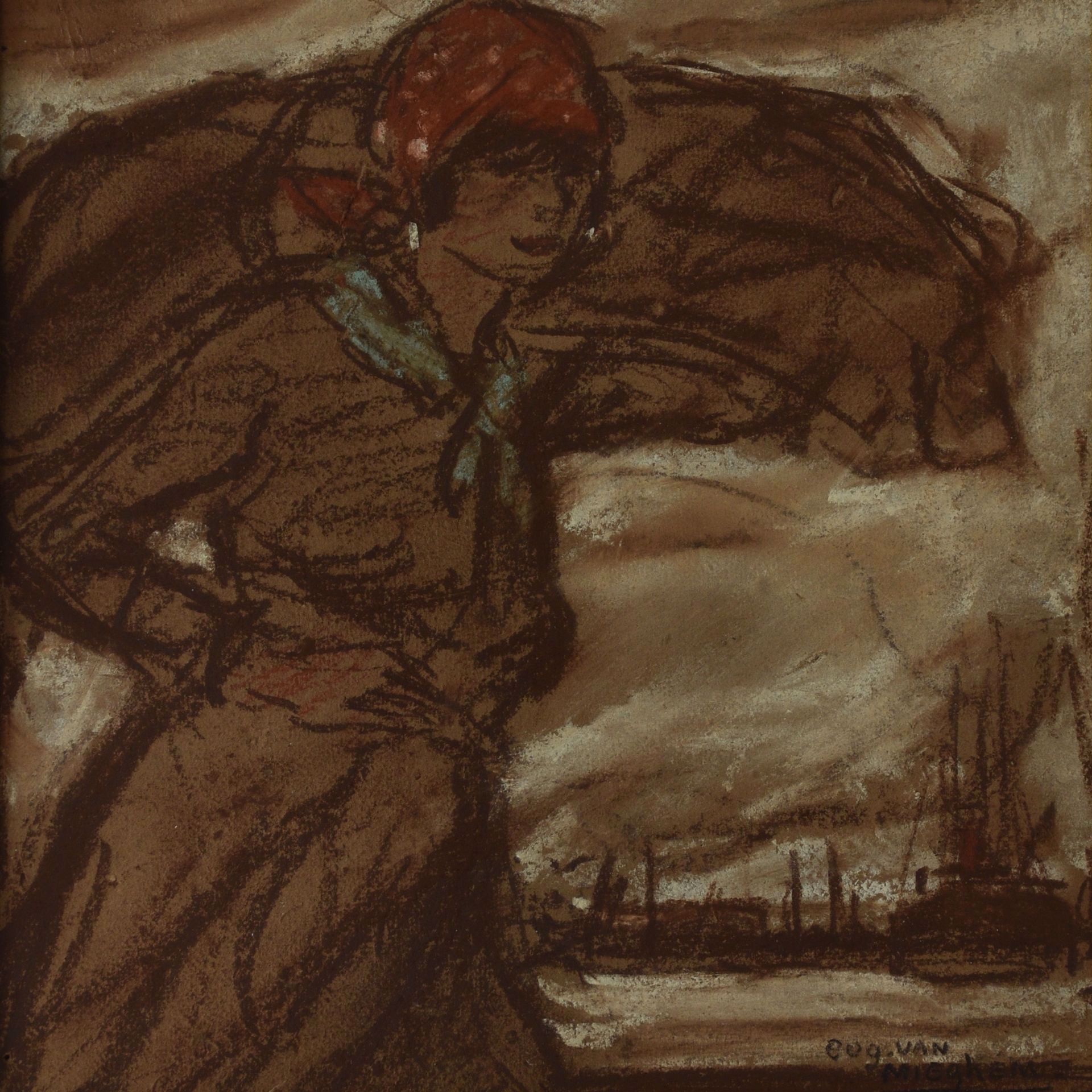 'Aan de dokken'. Pastel en zwartkrijttekening, 24 x 23.
